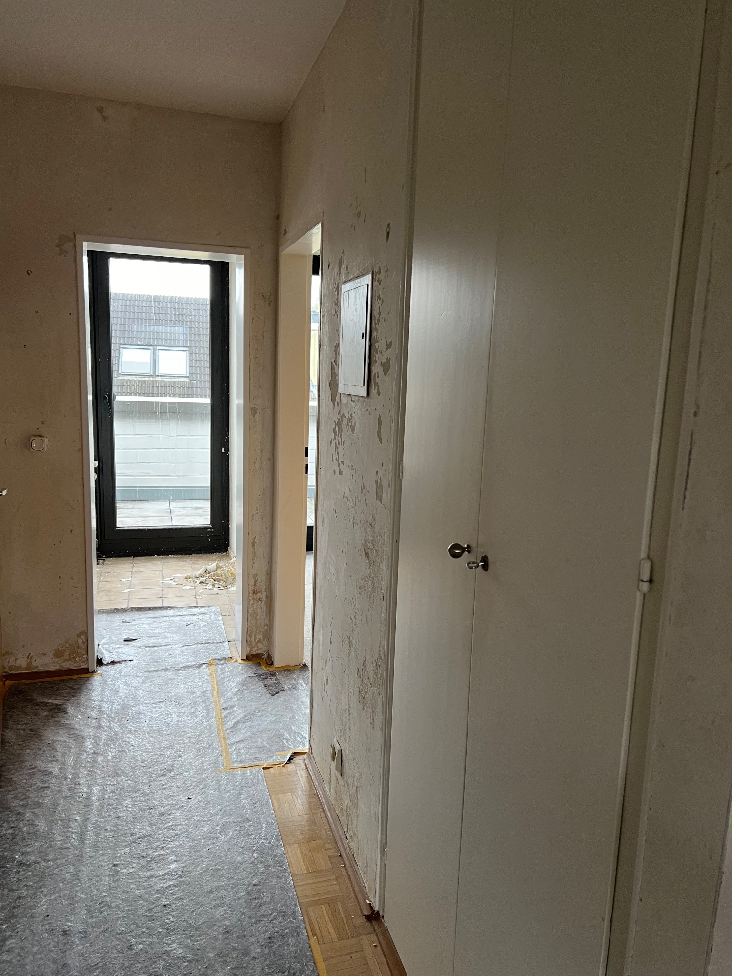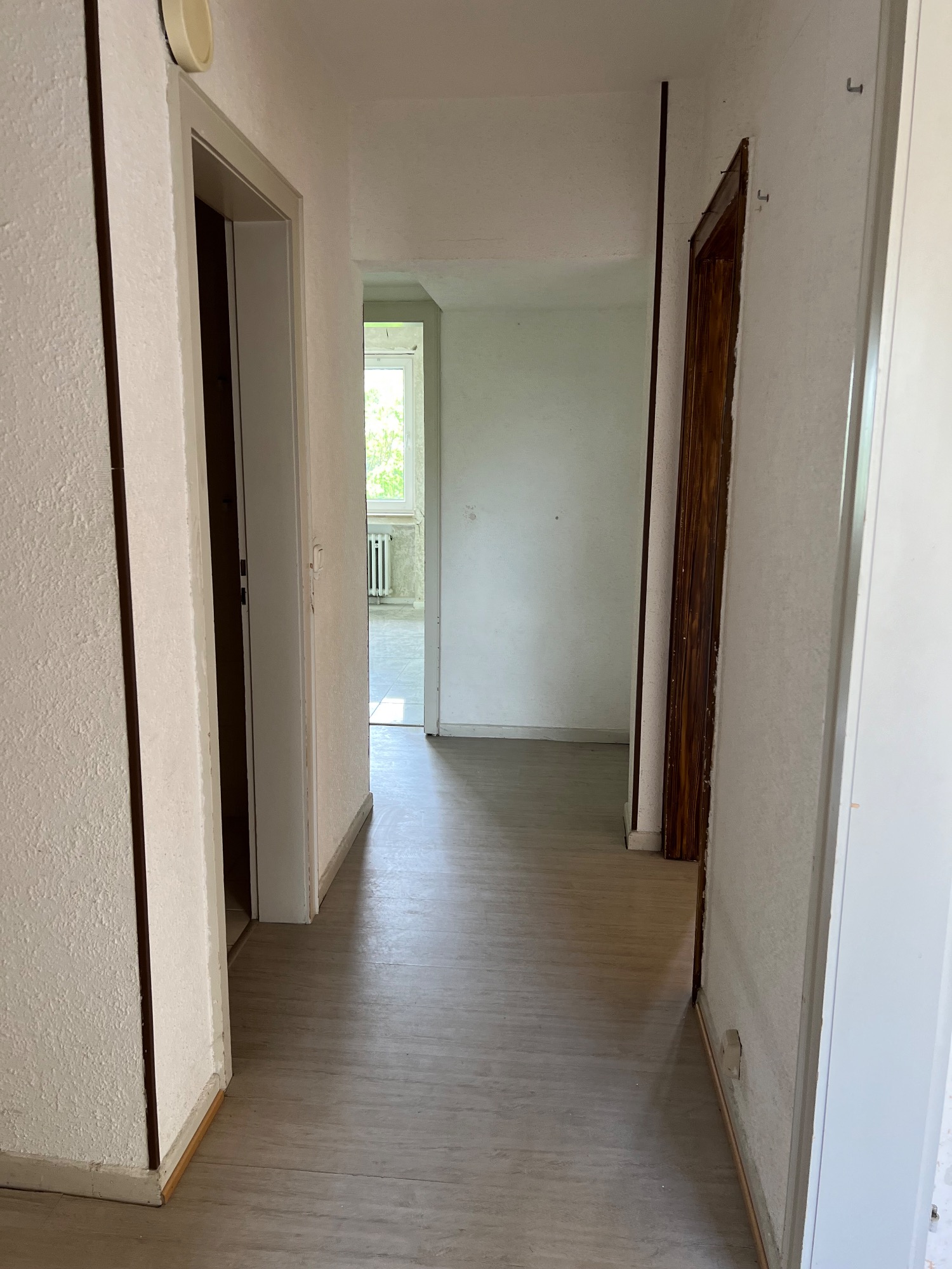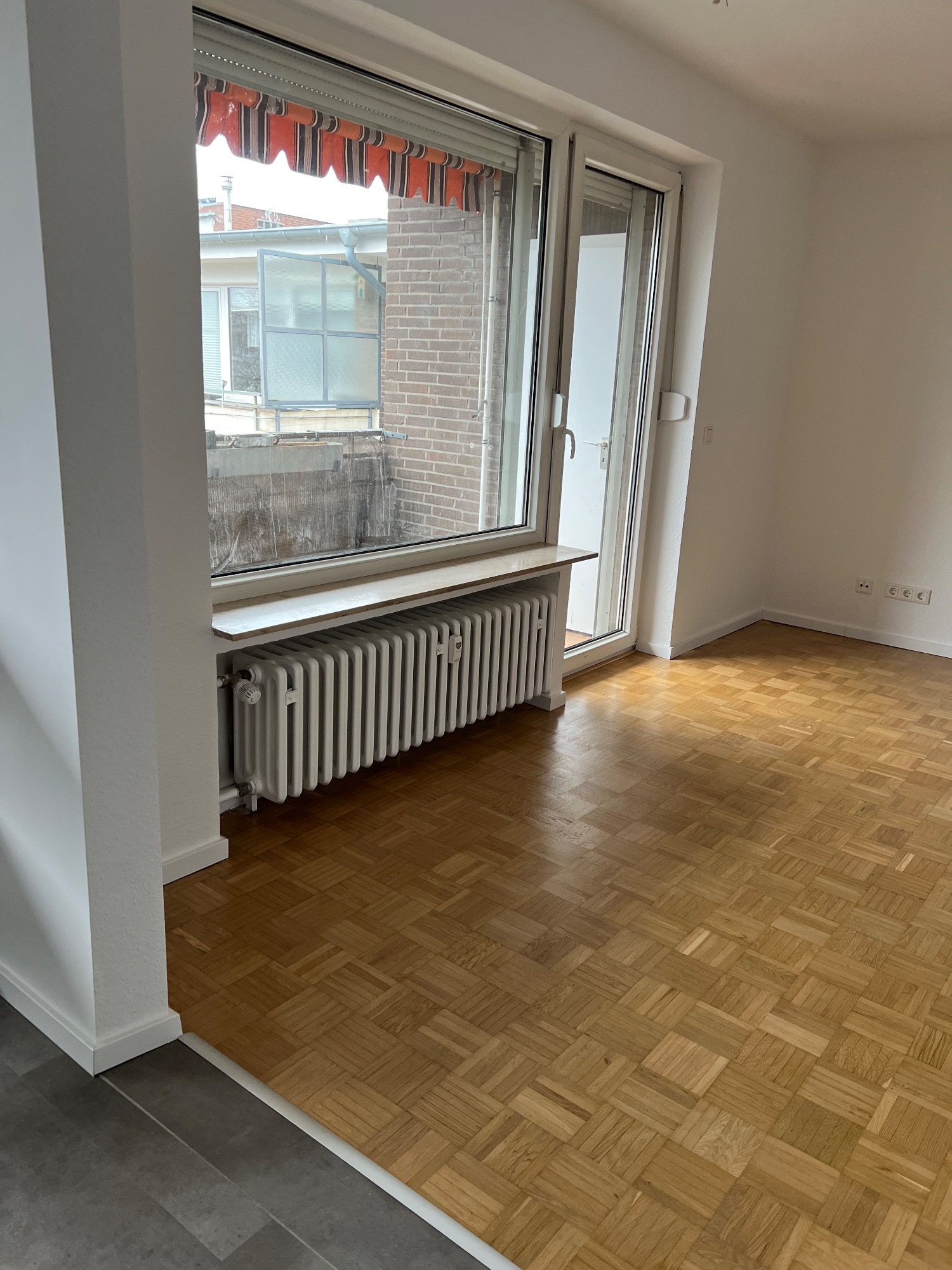 Vorher/Nacher Fotos: 2 Zimmer Wohnung, 65qm, Bad saniert, Elektrik teilweise erneuert, Türen ausgetauscht, Zargen lackiert, Kalzium Silikatplatten für eine bessere Dämmung an der Fensterfront angebracht, Parkett geschliffen und lackiert, Teppichboden entfernt und Laminat verlegt, Vinyl in Küche verlegt, Wandfliesen entfernt