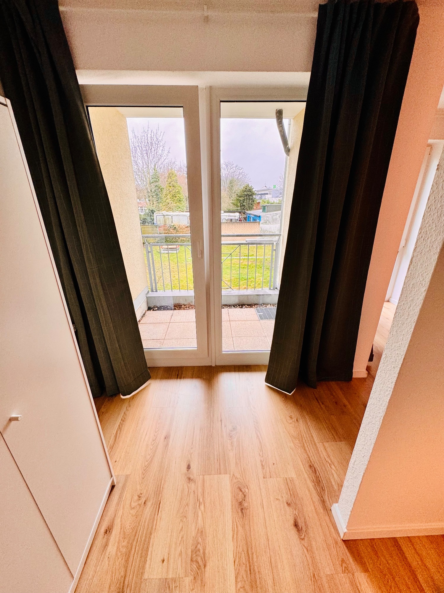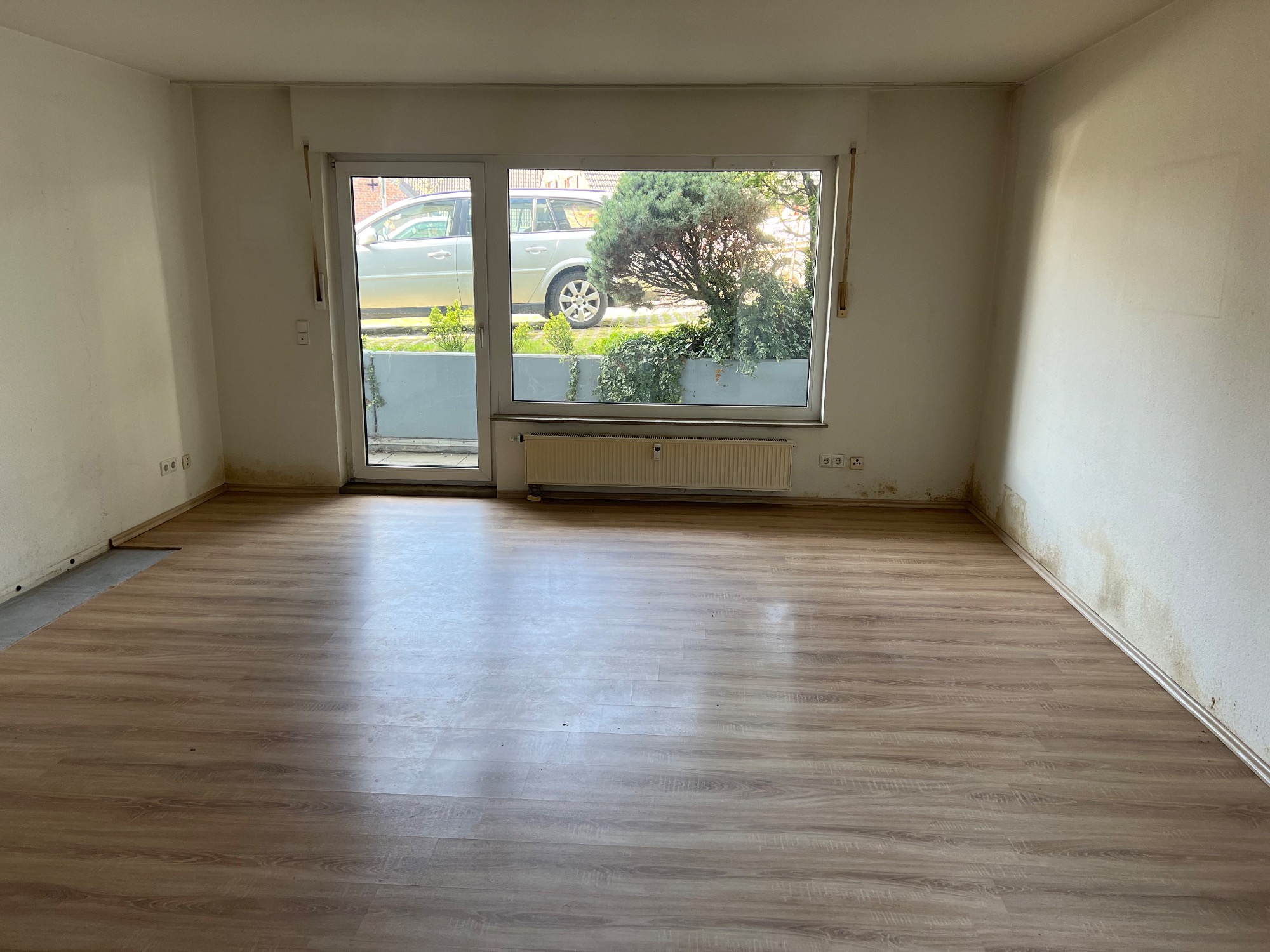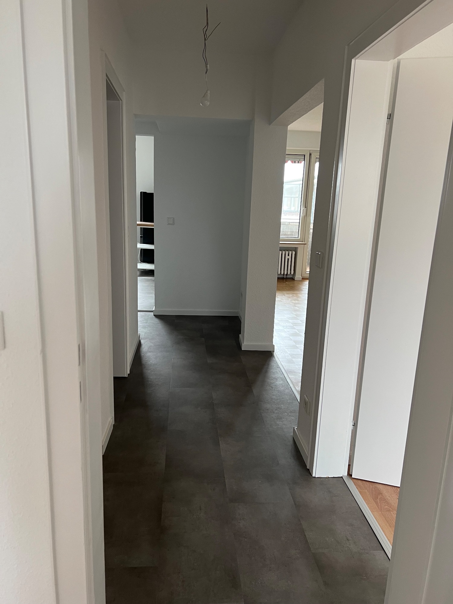 Vorher/Nacher Fotos: 2 Zimmer Wohnung, 65qm, Bad saniert, Elektrik teilweise erneuert, Türen ausgetauscht, Zargen lackiert, Kalzium Silikatplatten für eine bessere Dämmung an der Fensterfront angebracht, Parkett geschliffen und lackiert, Teppichboden entfernt und Laminat verlegt, Vinyl in Küche verlegt, Wandfliesen entfernt