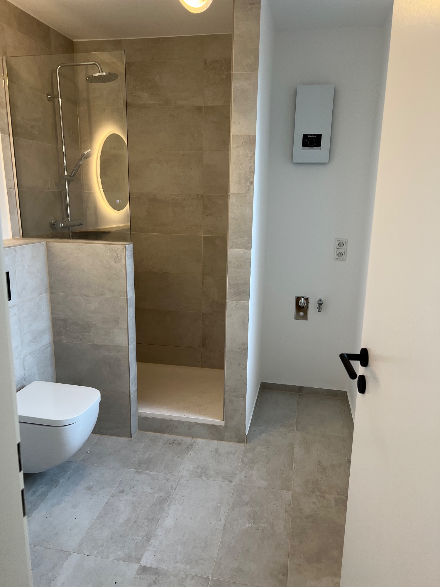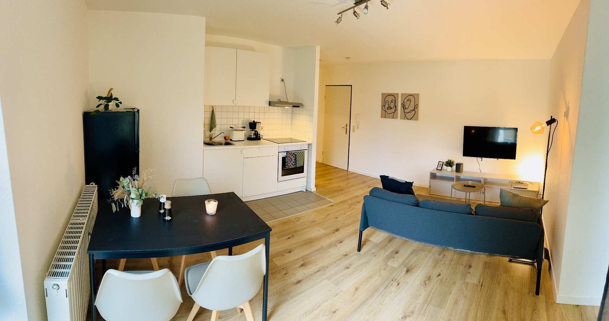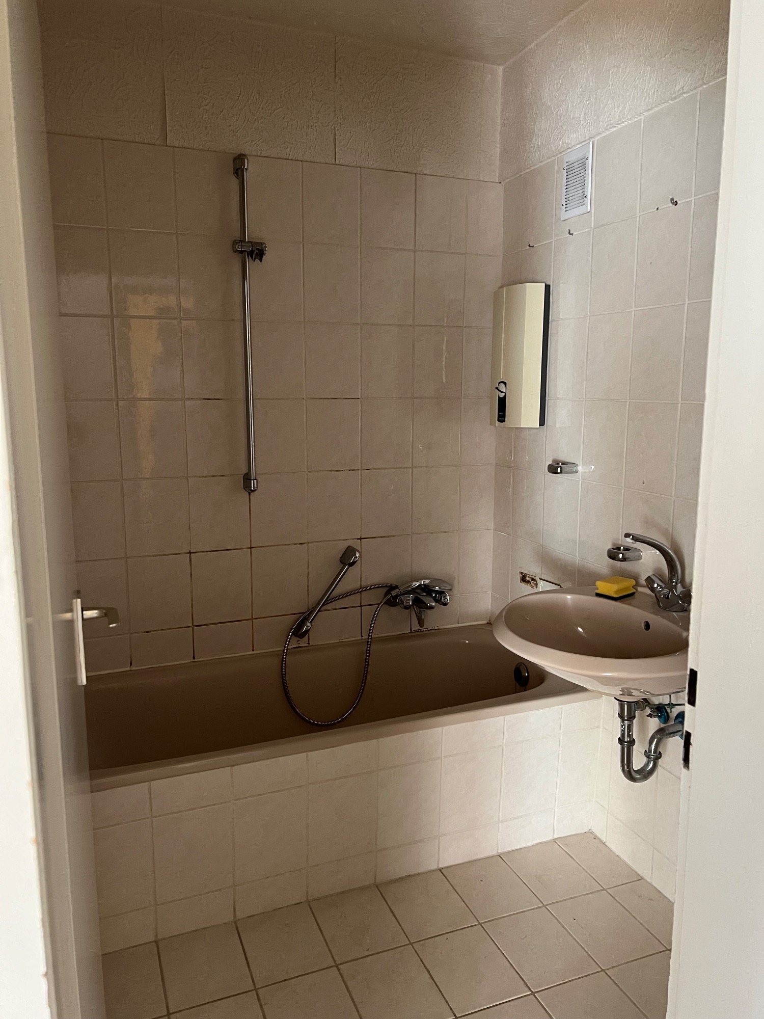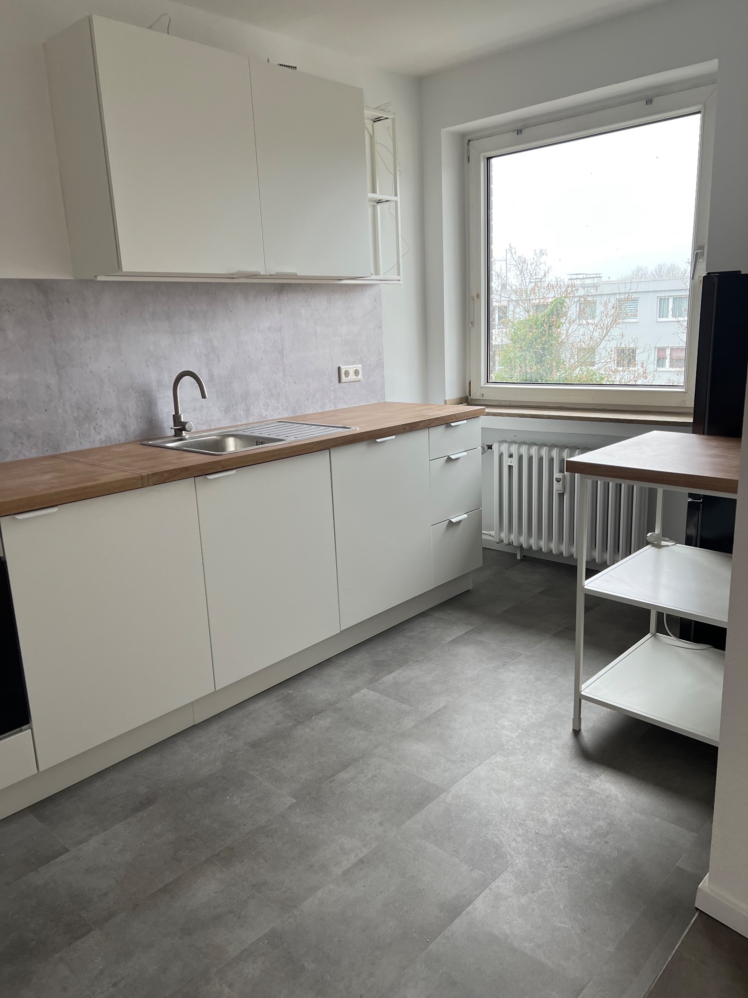 Vorher/Nacher Fotos: 2 Zimmer, 63qm, Böden ausgetauscht, Fliesen lackiert, Rolladengurte erneuert, Türen und Zargen ausgetauscht, tapeziert, gestrichen, Badamaturen getauscht, Duschwand getauscht, Küche eingebaut