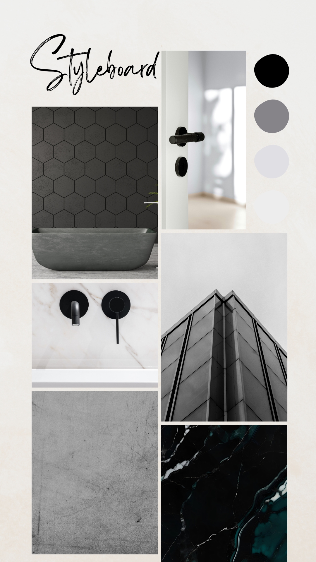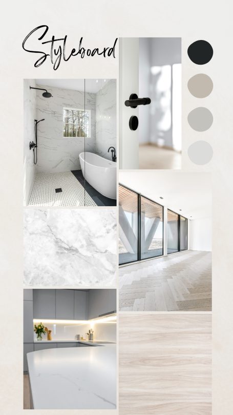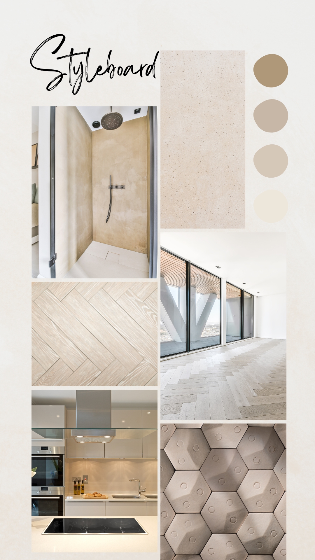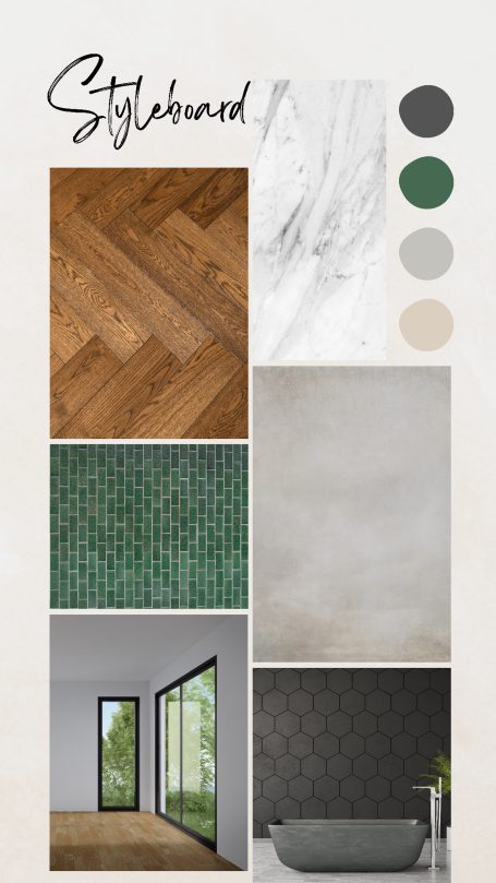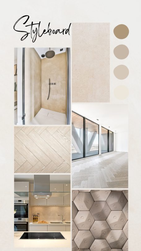 Styleboard – die visuelle Grundlage für eine stimmige, zielgerichtete Sanierung mit klar definiertem Stil und Materialkonzept.